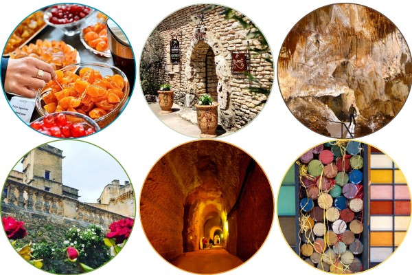 Partez à la découverte du Luberon avec l'escapade Héritage du Nord au Sud, un circuit qui vous permettra d’explorer des sites industriels et historiques. Commencez avec une note sucrée à la Maison du Fruit Confit à Apt. Continuez avec une visite guidée des impressionnantes Mines de Bruoux, véritable cathédrale d'ocre façonnée par l'homme. Ce site dévoilera l'histoire fascinante de l'extraction de l'ocre en Provence. Profitez du Vignoble de la Coquillade, l'un des plus beaux domaines viticoles du Luberon pour ravitailler après cette excursion. Savourez une planche de charcuterie et de fromage régionaux tout en dégustant trois vins locaux d'exception. Poursuivez votre aventure dans le village le plus coloré de France, Roussillon, où vous découvrirez les secrets de ce pigment naturel au cœur de Ôkhra-l’Ecomusée de l’Ocre. Continuez votre découverte au Clos des Jeannons, où une oliveraie et son moulin vous attendront afin de profiter d'une huile d'olive BIO AOP.